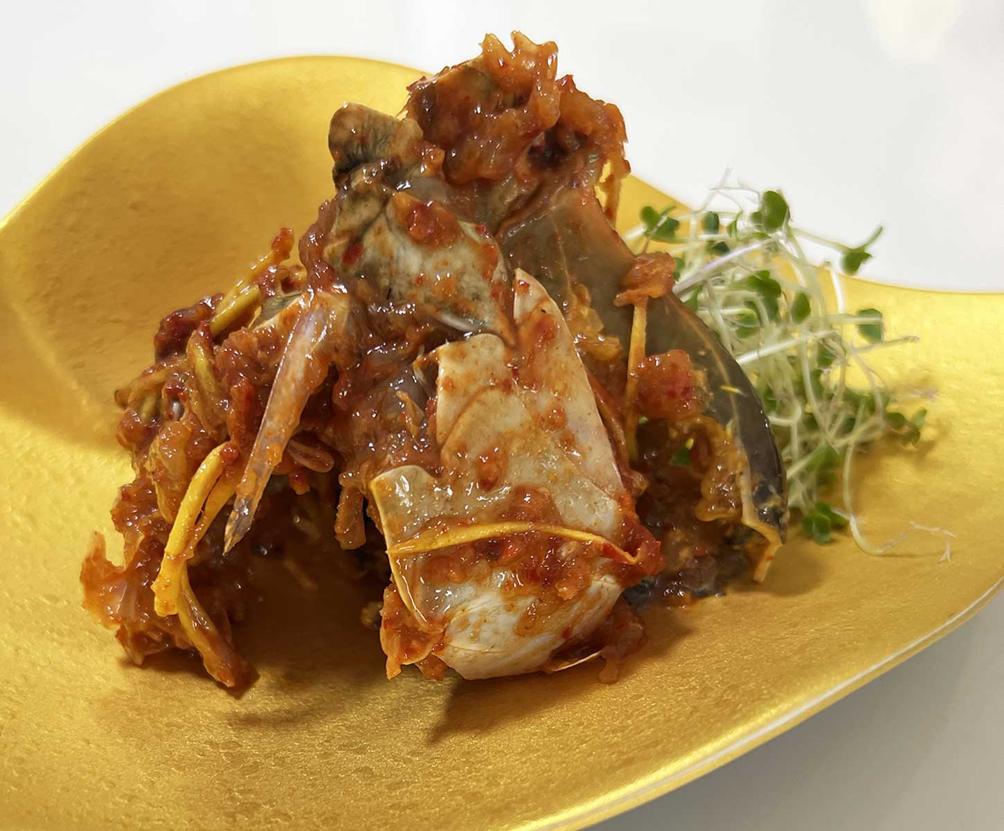 月に数個体しか獲れない幻のマングローブ蟹のケジャンです。当店でしか食べられない逸品です !